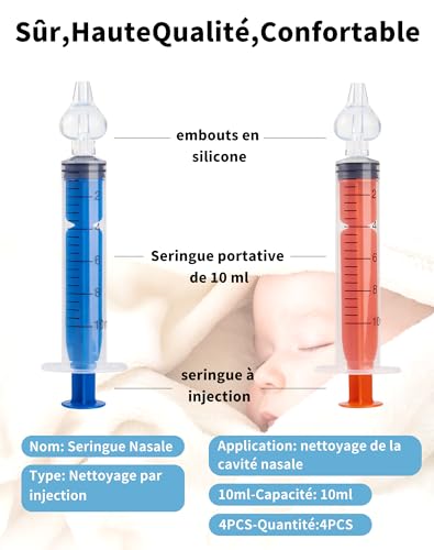 Siringa per Lavaggi Nasali Bambini 4PCS 10ML Irrigatore Nasale in Silicone Riutilizzabile Portatile e Pulibile, Siringhe Lavaggio Nasale Neonato Professionale per Neonati (Blu+Rosso)