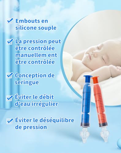 【Design Perfetto Adatto ai Bambini】: Il lavaggio nasale bambini è progettato con una siringa per iniezione, quindi la pressione può essere controllata meglio e l'acqua può essere iniettata delicatamente e lentamente nella cavità nasale, evitando il disagio e il soffocamento del bambino a causa di squilibrio scarico dell'acqua.