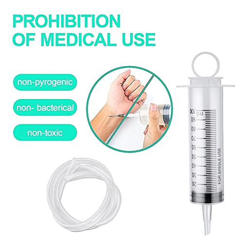 Siringa,Siringhe,Siringa 100 ml,Siringhe Monouso,Siringhe Grandi,Siringa Graduata,Siringa Plastica,Siringa Industriale,Siringa Senza Ago,con Tubo 130cm,per Misurazione di Liquidi,Senza Ago...