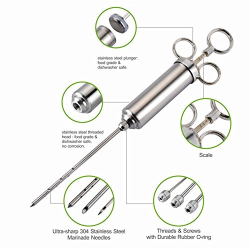 ❥[Sicurezza e alta qualità] - L'iniettore di condimento per carne è realizzato in acciaio inossidabile 304 per uso alimentare. Conforme agli standard di sicurezza ROHS della FDA statunitense e europea LFGB.