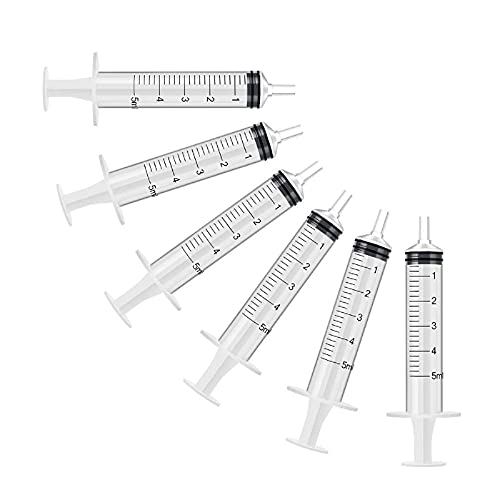 Siringhe da 5 ml per laboratori scientifici e erogazione di molteplici usi, strumenti per la misurazione della siringa, alimentazione degli animali, irrigazione delle piante,ricarica senza ago,6pezzi