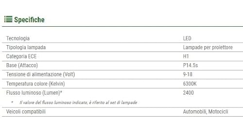 SIRIUS KIT 2 HEADLIGHT LED H1 CORTA CHIP 5530-12V - 1200lm a lampada - 6300K - per Auto - Moto