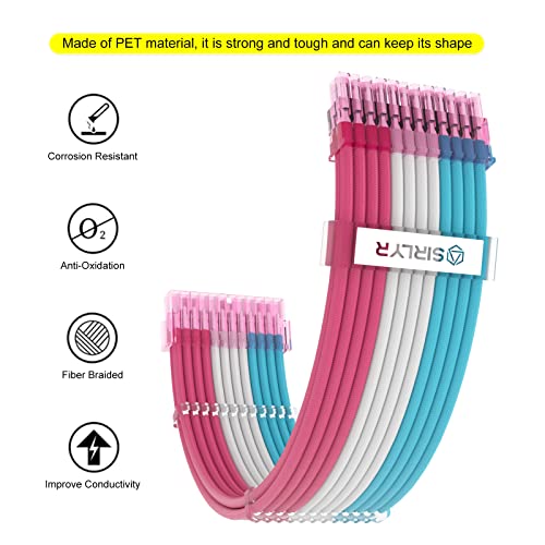 SIRLYR Cavo di prolunga PSU - Sleeved Cable Kit,16AWG 24Pin ATX / 8 (4+4) Pin EPS / 8 (6+2) Pin PCI-E Power Supply PSU Cables with Combs (rosa bianco blu)