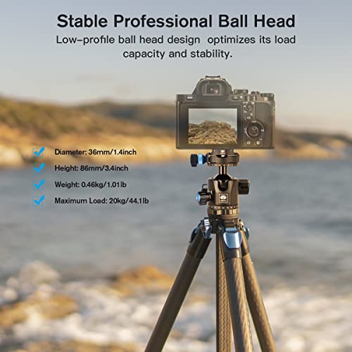 Manopole di bloccaggio indipendenti/Sistema di bloccaggio avanzato: con manopola di bloccaggio indipendente, blocco a sfera, manopola di controllo fricton e manopola di bloccaggio base, i fotografi possono regolare l'angolo in modo flessibile ed efficiente.