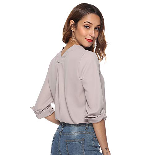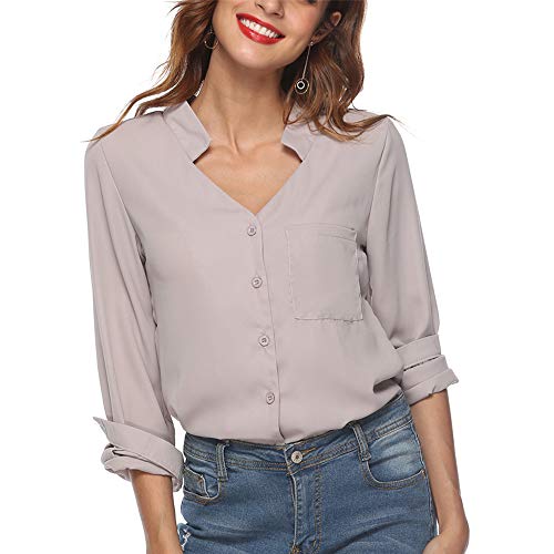【】 Camicia elegante Questa è una camicia che è perfetta per l'estate. Il design classico scollo a V in grado di meglio decorare il vostro collo. Il design manica lunga è perfetto per indossare in ufficio. Al fine di bloccare la vista folle dagli uomini, abbiamo volutamente aggiunto un rivestimento nella parte anteriore.