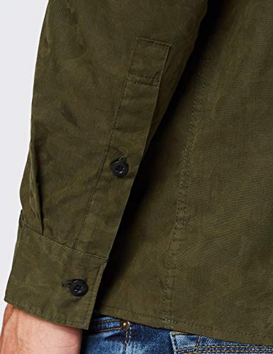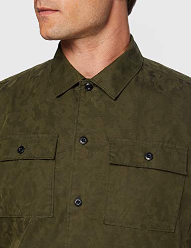Camicia regular fit over in nylon stampato mimetico tono cotone. Tasche applicate con patta frontale sul petto e tasche con apertura laterale. Dritto verso il basso. Doppio taglio con cuciture sul retro.