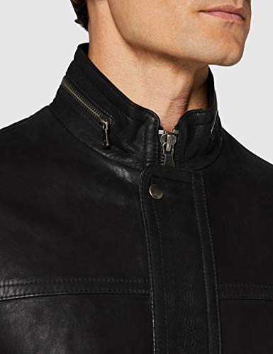 Sisley Leather Jacket Giacca, Schwarz 100, 46 Uomo