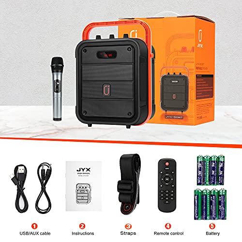 JYX Sistema PA Audio con Microfoni, Cassa Karaoke Professionale Ricaricabile Bluetooth Altoparlante Amplificato Portatile Impianto Karaoke Supporto TWS, AUX in, radio FM, REC,TF