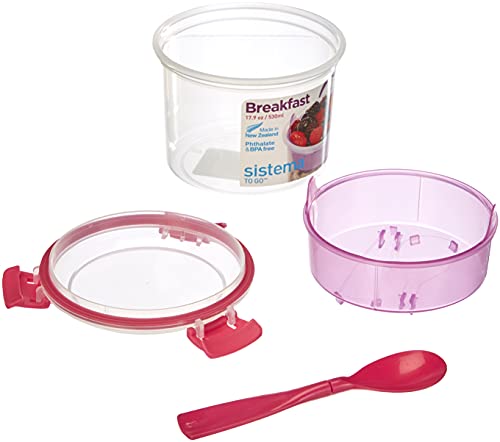 Sistema Breakfast TO GO | Contenitore per alimenti con scomparti e cucchiaio | 530 ml | Senza BPA | Colori assortiti