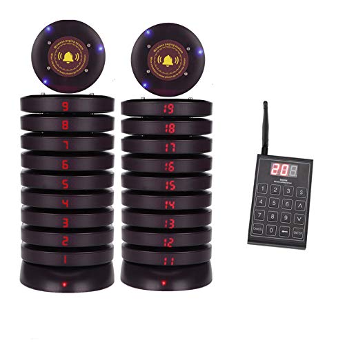 Sistema Cercapersone Ristorante, 1*Trasmettore + 20*Recettori Wireless Pager System, Nessuna Coda, Rimanere a Distanza Sociale Cercapersone senza Contatto Per Ristorante/Ospedale/Bar