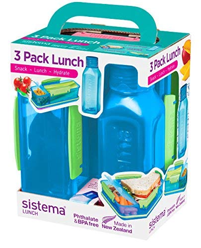 Sistema Confezione 2 Porta Pranzo 975/410 ml con Bottiglia 475 ml, Polipropilene, Assortiti, 19.7 x 15.8 x 5.85 cm, 3 unità