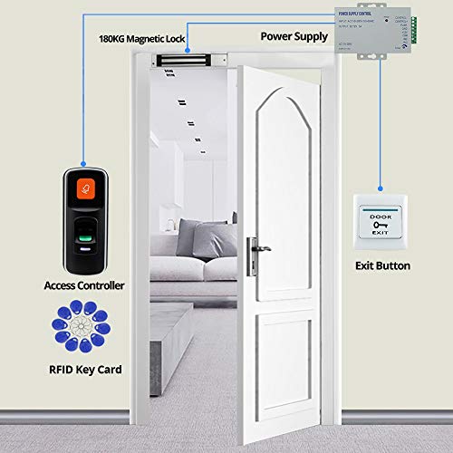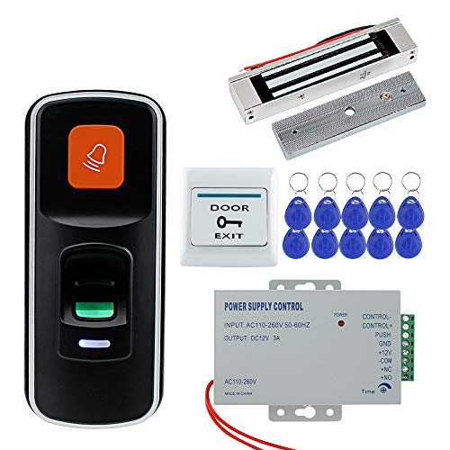 NN99 Kit sistema di controllo accessi porta RFID Controllo accesso impronte digitali Biometrico + 180KG Serrature magnetiche elettriche + Alimentazione + Portachiavi RFID 125KHz per casa
