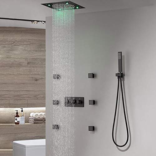 Sistema Doccia A Pioggia, Sistema Doccia LED Termostatico da 12 Pollici per Bagno con Set di Miscelatori A Getto d'Acqua da 6 Pezzi, Nero Opaco Metallizzato,A
