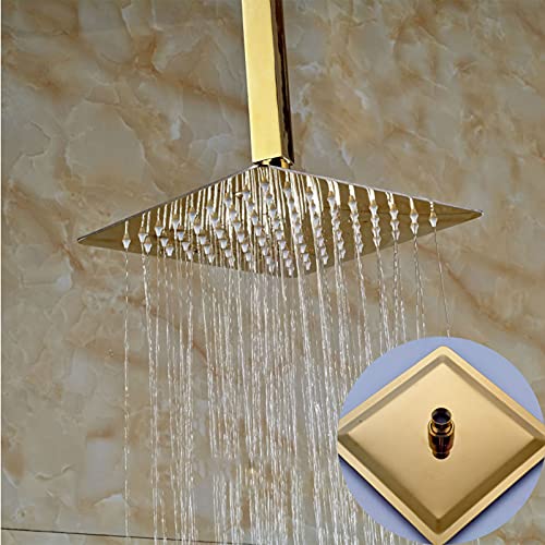 ★ Design moderno: il nostro set di rubinetti per doccia a soffitto è realizzato in metallo di alta qualità. La finitura dorata offre un aspetto elegante e luminoso, garantendo resistenza alla corrosione e alla ruggine attraverso l'uso quotidiano, conferisce un aspetto elegante a qualsiasi arredamento del bagno