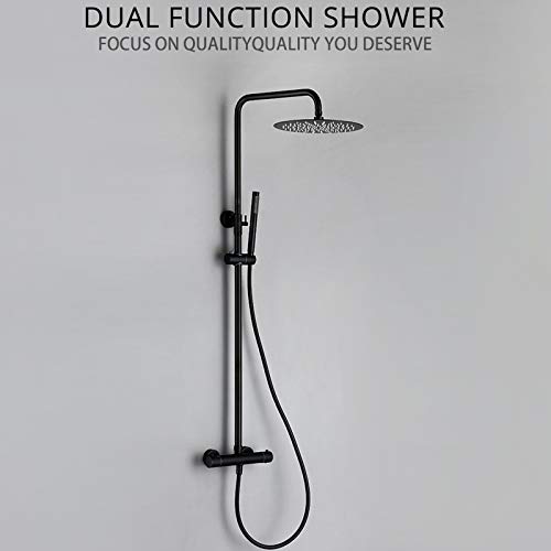Sistema Doccia Termostatico Colonna Doccia Montaggio a Parete Nero Opaco Set Doccia con Soffione Doccia a Pioggia, Ottone Doccetta,8 Inches