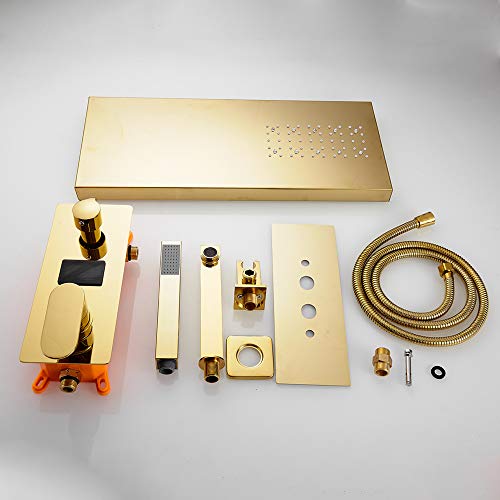 Sistema doccia con termostato (oro) Doccia rubinetto pioggia Doccia Set doccia Colonna doccia Testa doccia pioggia, doccia a mano, doccia a pavimento