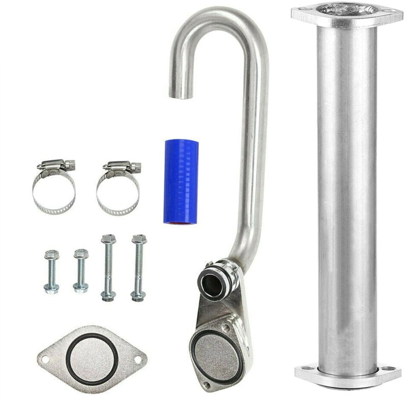Caratteristiche: Realizzato in acciaio inossidabile di altissima qualità. Non richiede la rimozione del turbo, del collettore di aspirazione o del tubo di salita. Alluminio billet lavorato a CNC e acciaio inossidabile. Sostituisce completamente il sistema EG-R, non sono necessarie altre parti. Testato a pressione e garantito per non perdere. Tutti i prodotti tuning DPF/EG-R-off sono esclusivamente per uso in gara. Specifiche: Montaggio: Adatto per motori diesel-turbo For-d 6.OL V-8 2003-2007 F250 F350 F450 F550 2003-2007 Escursione Furgoni serie E 2005-2010 Dimensioni del pacchetto: 360 * 130 * 80 mm / 14,17 * 512 * 3,15 pollici Peso della confezione: 1740 g/3,84 libbre Lista imballaggio: Tubo refrigerante in acciaio inossidabile 1*180° 1 * gruppo up-tubo in acciaio inossidabile 1*Billet EG-R block-off con O-ring Tubo in silicone da 1 * 0,75 " 2 * Fascette per tubi a vite senza fine 4 * Dadi flangiati seghettati-5/16 NC 2 * Bulloni a sei punti-5/16 NC 2 " 2 * Bulloni a sei punte-5/16