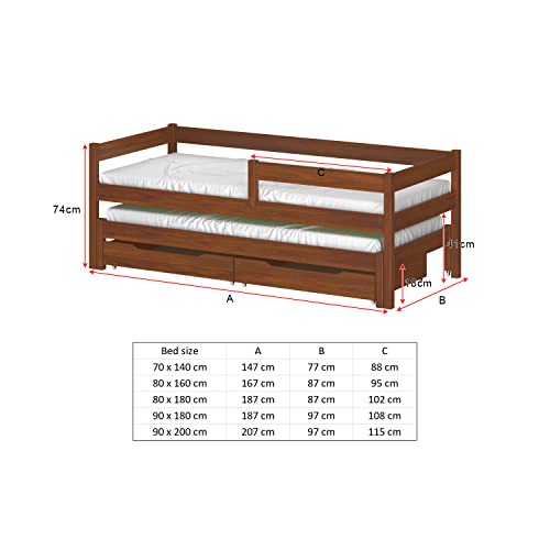 Jula - Sistema letto singolo per bambini, con letto estraibile, dotato di 2 materassi e cassetti. -, Legno, Palisander, 180x80/170x80