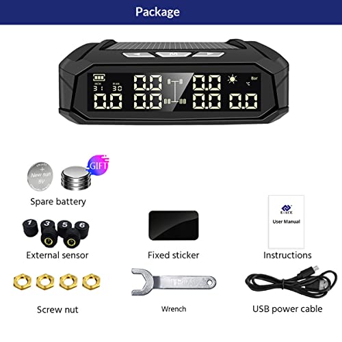 Schermata LCD digitale - Il display mostra la pressione e la temperatura in tempo reale, può essere posizionato stabilmente ovunque e puoi leggere facilmente i dati. Dati di pressione dei pneumatici in tempo reale, avvertimenti visivi e udibili di pressione e temperatura anormali, molto convenienti e pratiche.