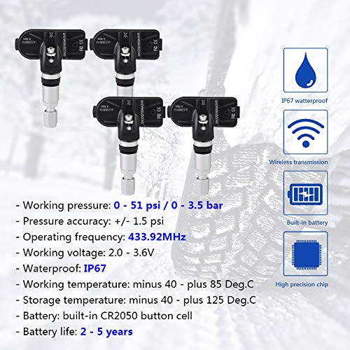 【Facile da installare】il sensore TPMS è facile da installare, l'installazione fai-da-te può essere facilmente completata in pochi minuti, non sono necessari altri strumenti e operazioni. Installare il sensore sulla valvola per assicurarsi che i pneumatici anteriori e posteriori siano coerenti. Ogni sensore ha un codice ID separato, che può essere abbinato prima dell'installazione diretta, e la posizione del pneumatico può essere scambiata.