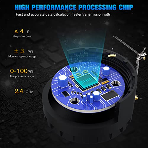 SISTEMA OPERATIVO: Il sistema di monitoraggio della pressione dei pneumatici è progettato per gli smartphone, è sufficiente collegare il proprio smartphone all'applicazione "TPMSII". Connessione ad alta velocità, trasmissione stabile, dati accurati e lunga distanza di ricezione.