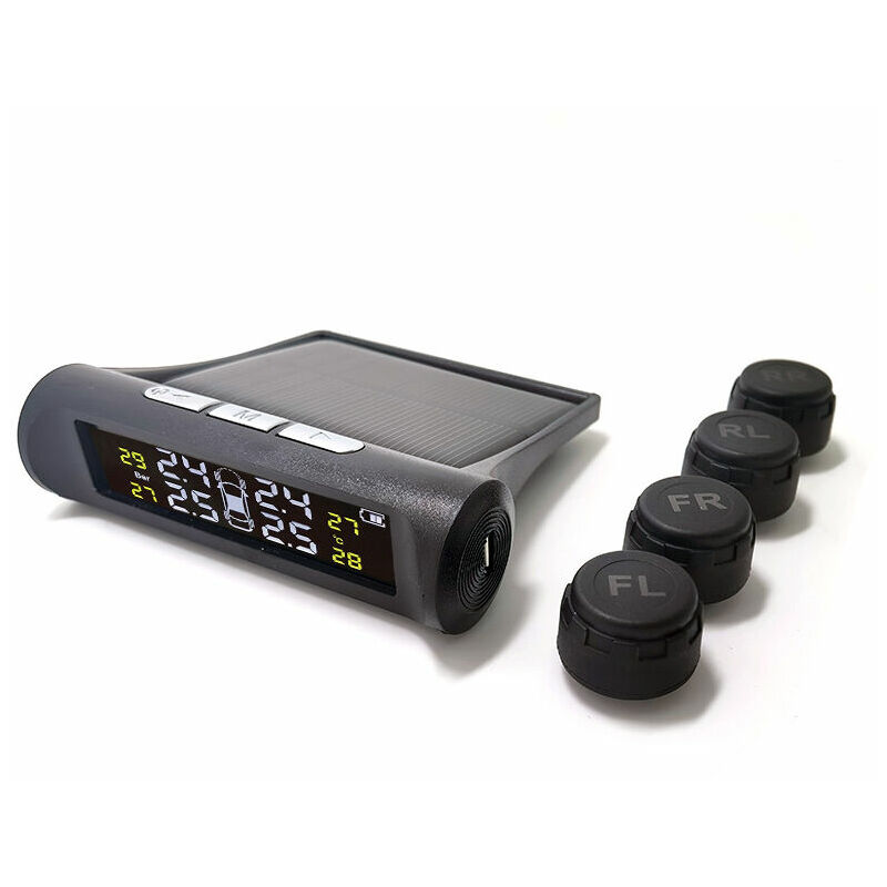 Ricarica solare e USB - - Il ricevitore del sistema di monitoraggio della pressione dei pneumatici stesso ha un pannello solare e una batteria al litio di grande capacità. La batteria del sensore del sistema di monitoraggio della pressione dei pneumatici dell'auto può essere utilizzata per 3 anni, solare e USB potrebbe non essere necessario sostituire prima la batteria del sensore. Humidor non interferisce e può essere utilizzato normalmente con tempo soleggiato o piovoso. 【4 SENSORI INTELLIGENTI】 - Il cicalino tpms esterno suona rilevando simultaneamente la temperatura e la pressione di 4 pneumatici. Il sensore di monitoraggio della pressione dei pneumatici ha un grado di protezione IP67, quindi non devi preoccuparti di guidare l'auto ad alta pressione ed è protetto da pioggia e umidità. Conosci la pressione e la temperatura dei pneumatici senza cablaggio. Il sensore è bloccato con un dado per evitare furti, così puoi usare il circuito con sicurezza! 【Rilevamento automatico delle