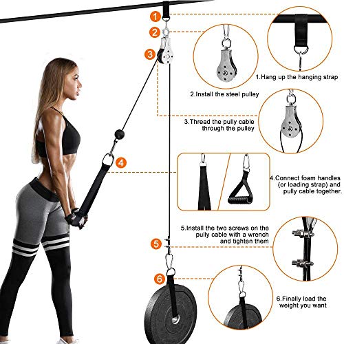 HUET - Sistema di puleggia per cavi fitness per casa e palestra, accessori per allenamento fai da te, sistema di fissaggio per trazioni di lat pulldown, bicipiti, schiena, avambraccio