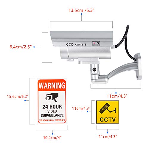 Sistema di sorveglianza CCTV per telecamera fittizia con LED simulati realistici, videocamera di sicurezza falsa SourceTon con 6 pezzi di avviso di sicurezza Avviso adesivi decalcomanie