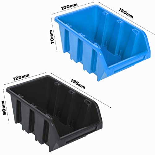 Scatole impilabili: 33 pezzi 100 x 155 x 70 mm blu + 22 pezzi 100 x 155 x 70 mm nero + 9 pezzi 120 x 195 x 90 mm blu + 18 pezzi 120 x 195 x 90 mm nero