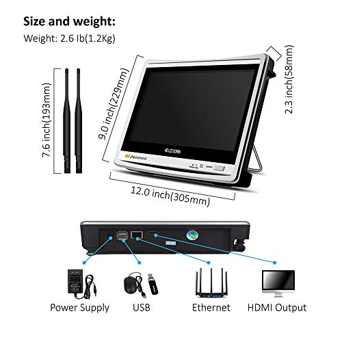 Sistema di telecamere di sicurezza FHD 1080P, wireless per esterni, Jennov, 4 telecamere a circuito chiuso con sistema di sicurezza wireless, WiFi, con monitor da 12 pollici e 1 TB HDD personalizzato, visione notturna