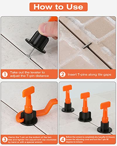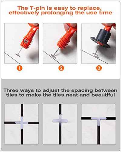 【Completamente equipaggiato】Questo set indispensabile è composto da 502 pezzi di ausili per la posa del sistema di livellamento delle piastrelle. Contiene 100 pezzi di livellatori per piastrelle, 100 perni a T in acciaio (sostituibili se necessario per aumentarne la durata), 300 pezzi di distanziatori da 2 mm per piastrelle e 2 chiavi.