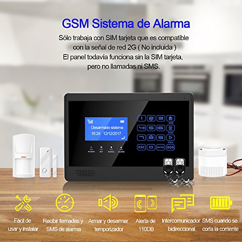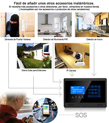 Eray - Sistemi di sicurezza allarmi (antifurto, schermo menu, GSM, 10 zone, senza fili, indicazione automatica, App iOS e Android)