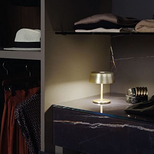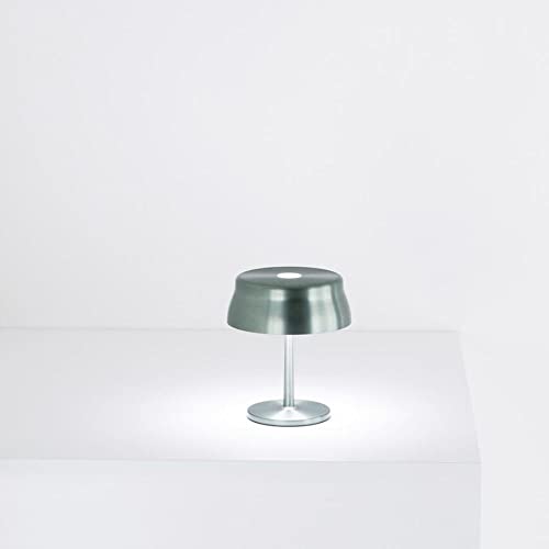 Lampada da tavolo LED ''Sister Light'' nella versione mini portatile, ricaricabile, dimmerabile e con la possibilità di cambiare la colorazione della luce. Dotata inoltre di chiamata servizio al tavolo con una luce blu alternativa. Disponibile in cinque diverse colorazioni oro anodizzato, rame anodizzato e verde anodizzato. Ideata da Federico De Majo