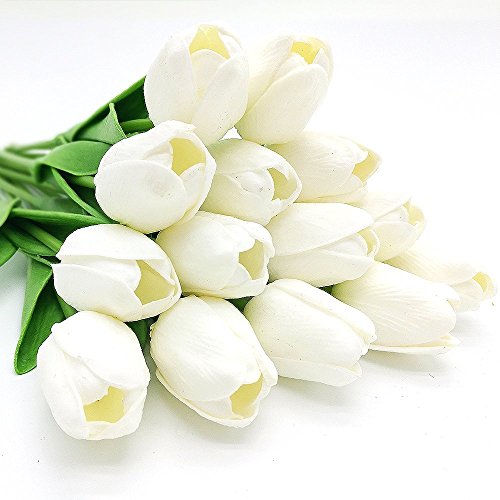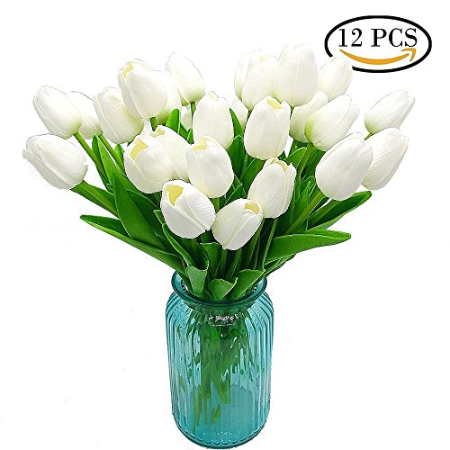 Sisthirth 12 PCS Fiori Artificiali del Tulipano, Mini pianta di Seta Falsa del Vero Tocco Mini Grande per la Decorazione Domestica della Stanza della Festa Nuziale (Bianco)