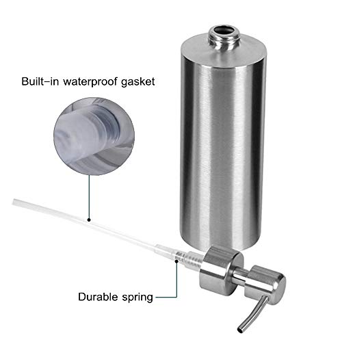 Materiale: Il dosatore per sapone è realizzato in acciaio inossidabile di alta qualità, è resistente alle cadute, alla ruggine e ha eccellenti proprietà di tenuta. Superficie spazzolata, resistente all'usura, facile da pulire.