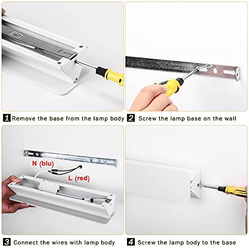 【Sorgente luminosa a LED】: La lampada da parete bianca adotta una striscia luminosa a LED da 15 W, trasmette una luce calda morbida (2700-3000 K), risparmio energetico, non danneggiare gli occhi.