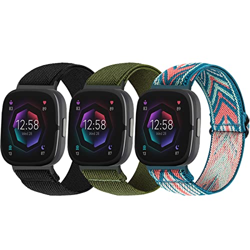 SITAFU 3 Pezzi Cinturino Compatibili con Fitbit Versa 3/Versa 4 Cinturino,Nylon Elastica Regolabile Cinturini di Ricambio Sport Strap per Donna Uomo