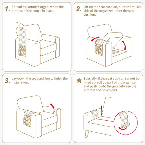 【Facile da installare】 - Questo caddy per gadget per bracciolo non richiede un assemblaggio, basta far scivolare l'estremità dell'organizer sotto il cuscino del divano, quindi coprire il bracciolo del divano.