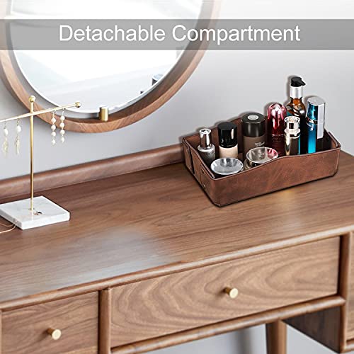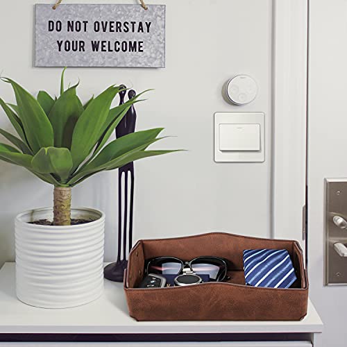 SITHON Vassoio Portaoggetti in PU Pelle, Contenitore Svuotatasche Organizzatore da Comodino Scrivania per Gioielli, Telecomando, Chiavi, Telefono, Portafoglio, Monete, Rettangolo Marrone