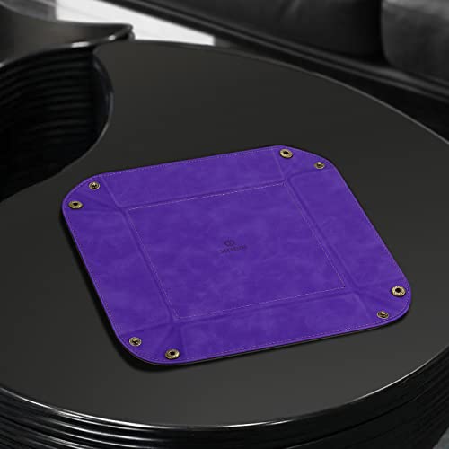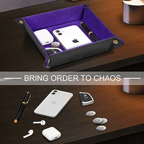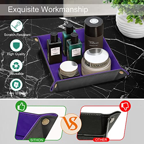 SITHON Vassoio Portaoggetti in PU Pelle, Contenitore Svuotatasche Organizzatore da Comodino Scrivania per Gioielli, Telecomando, Chiavi, Telefono, Portafoglio, Monete, Viola