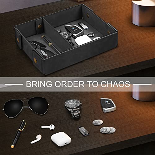SITHON Vassoio Portaoggetti in Pelle con 2 scomparti removibili, Contenitore Organizer Vassoio per Gioielli, Organizzatore da Comodino Scrivania per Telecomando, Chiavi, Telefono, (Nero)