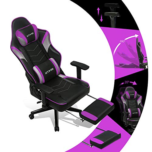 COMPLETAMENTE FUNZIONALE COMFORT ENHANCE: Girevole 360°, reclinabile 180°, oscillazione 20° controllabile, bracciolo imbottito morbido regolabile in altezza e supporto lombare, poggiapiedi retrattile. Consentire il pieno supporto e allungare corpo sulla sedia. Cuscino per seduta largo 11cm/54cm di larghezza e pelle PU di alta qualità, accogliente da sedersi a fare un sonnellino. Telaio XL grandi dimensioni, altezza del sedile regolabile, ruote da lisce. Prefetto per impiegato, studioso o gamer.
