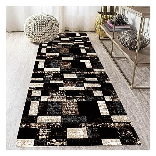 Siunwdiy Moderno Tappeto Passatoia antiscivolo 2 Metri Marrone, nero Geometrico Lavabile Tappeti Runner al Metro Lungo Tappeto Cucina per Camera Salotto Ingresso Corridoio,110X360CM