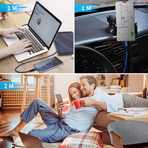 Siwket Cavo USB C, [2 pezzi 1M + 2M ] Cavo USB a tipo C in nylon intrecciato per Samsung Galaxy S21 S20 S10 S9,Note 20 10 9,A51,LG G5 G6,Sony Xperia,Huawei P30 P20 Mate20,Google Pixel ecc