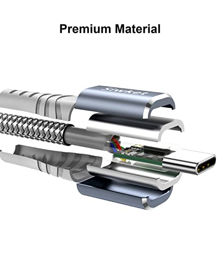 Lavorazione di qualità: interfaccia USB-C fine e senza cuciture, doppio strato di nylon intrecciato di alta qualità con alloggiamento in lega di alluminio altamente lucidato, questo cavo di ricarica di tipo C è di qualità superiore, testato per resistere fino a 15.000 curve senza danni, durevole e più a lungo per risparmiare denaro.