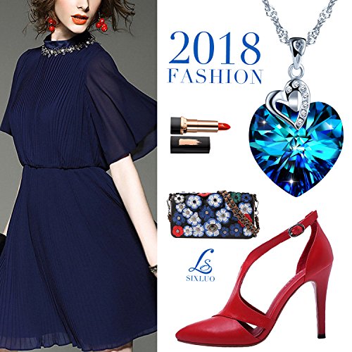 SIXLUO - Collana con ciondolo a forma di cuore in argento Sterling 925 con ciondolo a forma di cuore "Eternal Love", da donna, colore: Blu oceano
