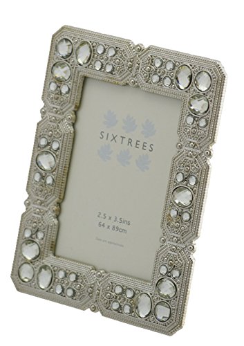 Sixtrees, 2 eleganti cornici portafoto con perle e cristalli, effetto anticato, stile vintage/shabby chic, per foto di formato 6,5 x 9 cm, silver, 3"x2" Maud