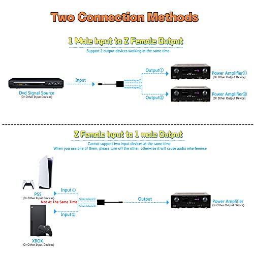 Si prega di rimuovere il rivestimento giallo prima dell'uso, altrimenti non potrà essere collegato alla TV (nota: se si collegano 2 ingressi femmina a 1 uscita maschio, i 2 ingressi femmina non possono funzionare insieme contemporaneamente).