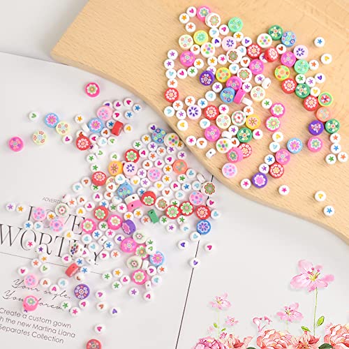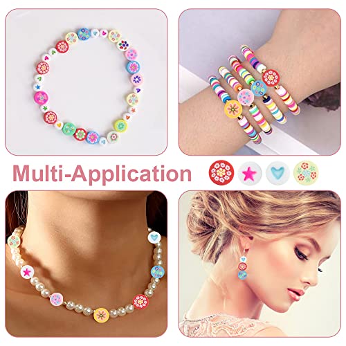 ♥ [Eccellente materiale morbido in ceramica e acrilico]: Le nostre perline floreali sono realizzate in materiale ceramico morbido (argilla polimerica), dai colori vivaci, leggero e resistente. Gli altri due tipi di perline sono in acrilico con cuori e stelle. L'argilla soffice è morbida al tatto rispetto all'acrilico, che è duro e finemente levigato in modo da non ferire le mani. Ogni perlina è molto semplice e il disegno è stampato in modo chiaro.