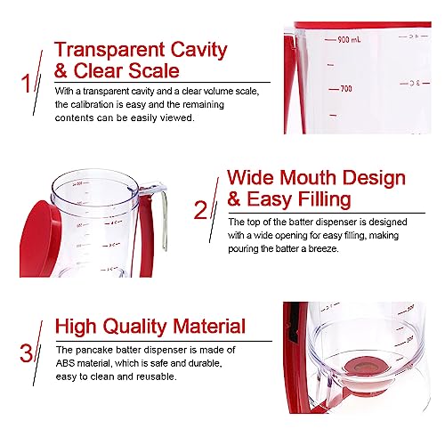SIYINGSAERY Dispenser per pastella per pancake, 900 ml, per cupcake, pastella, separatore manuale per pastella, crema, crepes, imbuto, dispenser con etichetta di misurazione per waffle, muffin, mix